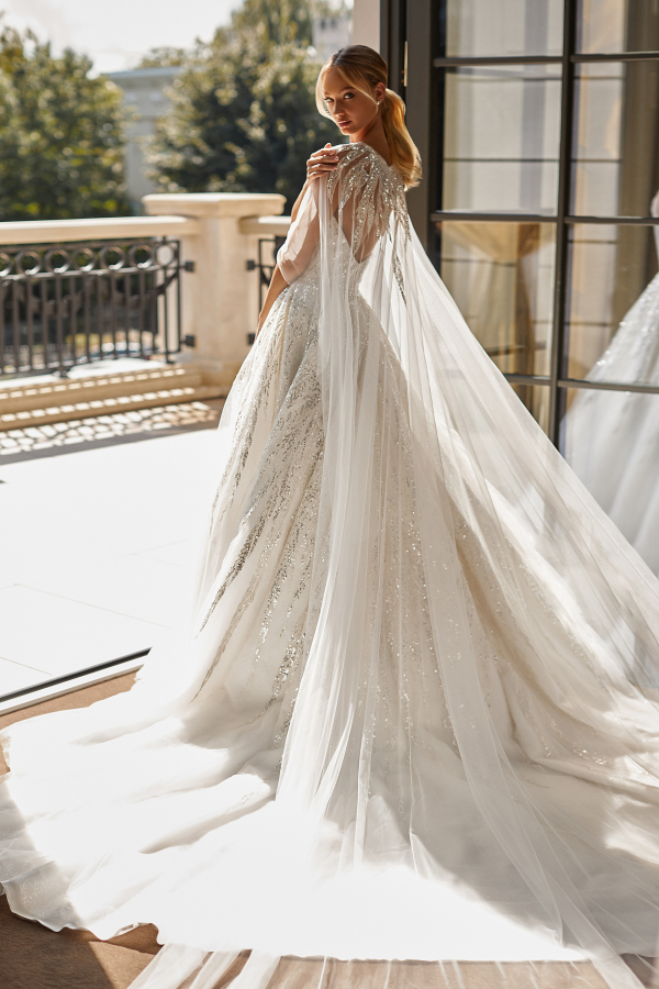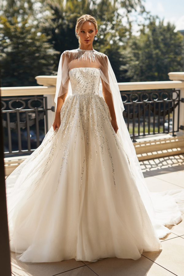 Espectacular vestido de corte A con aplicaciones de lentejuelas brillantes.